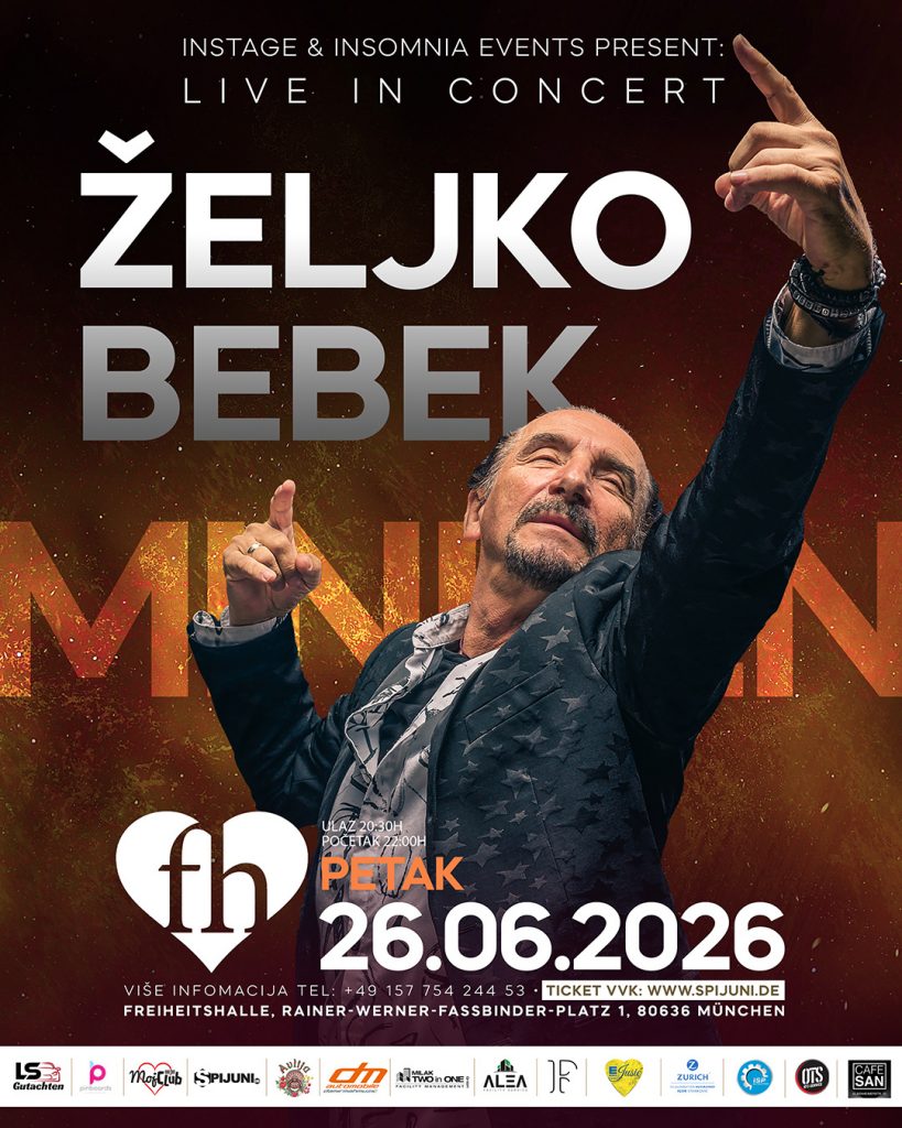 Ob mitreißende Turbo-Folk-Rhythmen, emotionale Balladen oder kraftvolle Pop-Performances – Insomnia Events steht für Events, die die Vielfalt und Lebensfreude der Balkanregion widerspiegeln. Wir holen Stars aus Serbien, Bosnien, Kroatien, Montenegro und weiteren Ländern direkt nach München und schaffen eine Heimat für alle, die diese Musik lieben und leben.
